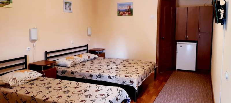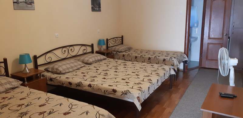 На первом этаже на ваш выбор предлагаются две уютные, просторные комнаты данной категории. Комнаты могут вмещать до трех человек (с возможностью установки дополнительного четвертого спального места) и рассчитаны на любой состав отдыхающих. В комнатах могут разместиться как семейная пара (для них предоставляются комнаты с двуспальной и односпальной кроватью), так и просто компания друзей, которая может разместиться в комнате с тремя односпальными кроватями. В этой категории комнат есть возможность установки дополнительного полноценного четвертого спального места.